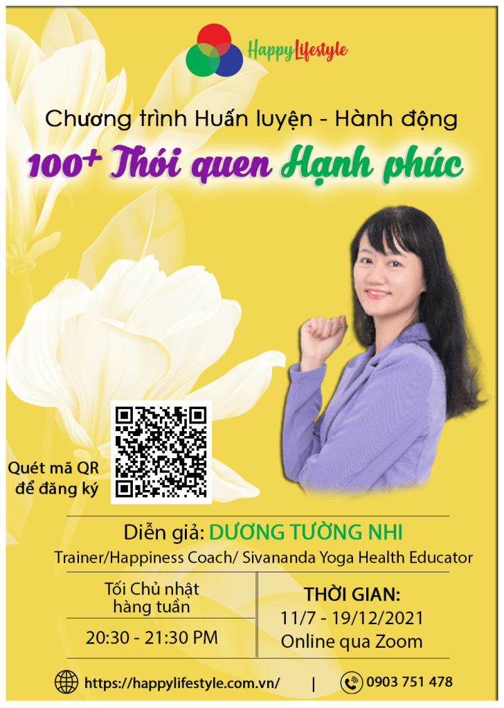 Chương trình Huấn luyện – Hành động “100+ thói quen Hạnh phúc” kéo dài trong 6 tháng sẽ cung cấp cho bạn kiến thức, những công cụ, phương pháp thực hành cùng môi trường rèn luyện và tạo lập những thói quen mới.